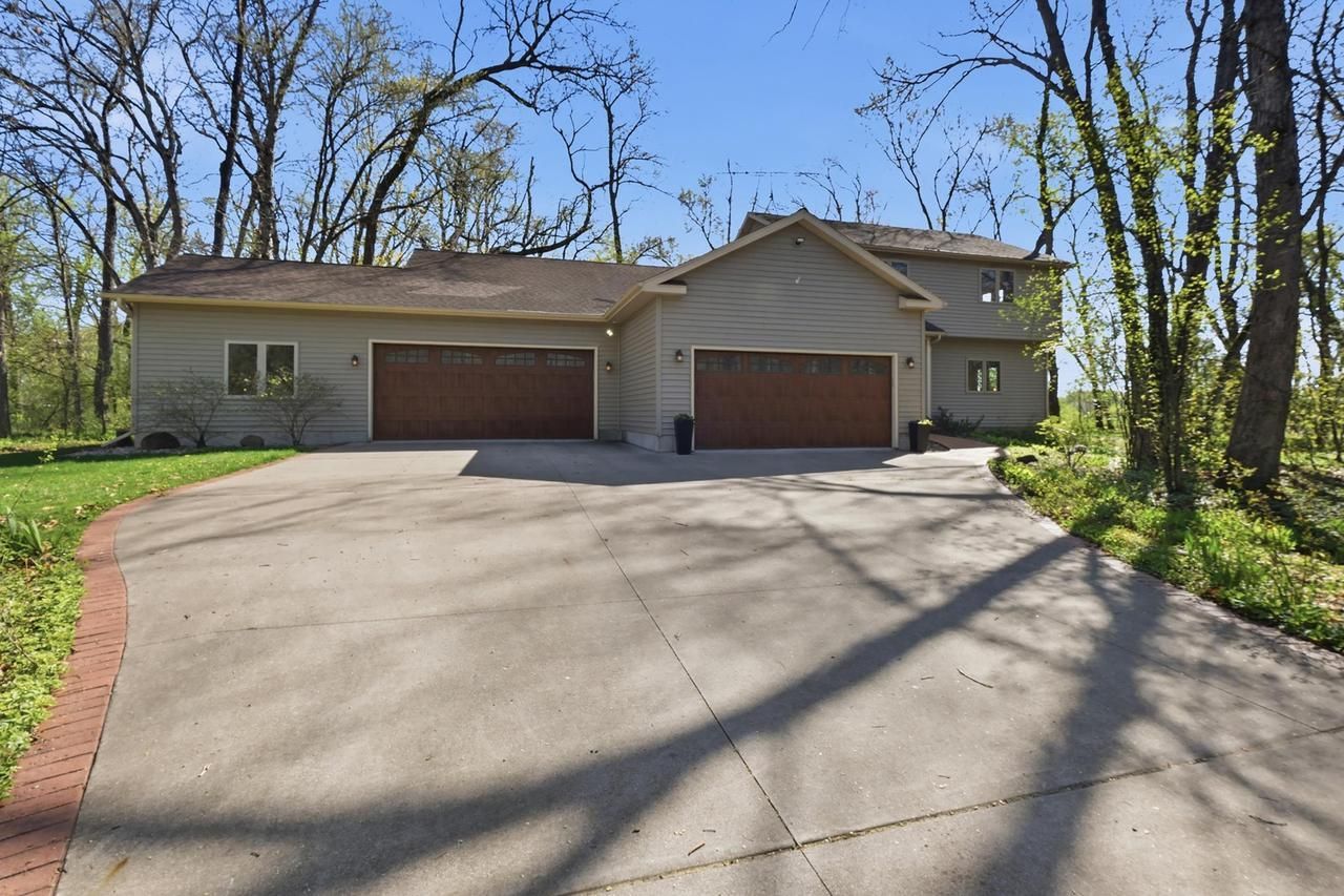 Built in 1991, 2nd owner since '98. This well maintained home is move in ready, updated, freshly painted, smoke/ pet-free and will pass any pro home inspection, on DOUBLE LOT. The 1-of-a-kind hardwood floor outlasted this family and compliments the wooded double lot. Formal dining, granite counters, under mount sink, ice disp, coffee alcove, wood burning FP, ceiling rosette, solid wood doors & windows, fresh carpeting, rural forest views w/wildlife enjoying the lush lawn. An XL mud/laundry rm has plenty of closet space & adjoins TWO 2-car garages w/room for full sized pick-ups & pontoon w/a new 8x18 insulated gar door, heated workshop & well lit attic. SW facing ENSUITE is open and airy w/a vltd ceiling over both your bed/ full spa-bath w/X-wide+deep soaker tub, shower, vintage faux fireplace, corner windows & a big organized walk-in closet. Bedrms 2&3 easily fit Queen bed sets. LG deck & covered patio. Country living 10 min to Oregon, Stoughton,Evansville & 20-25 to all points Mad, UW