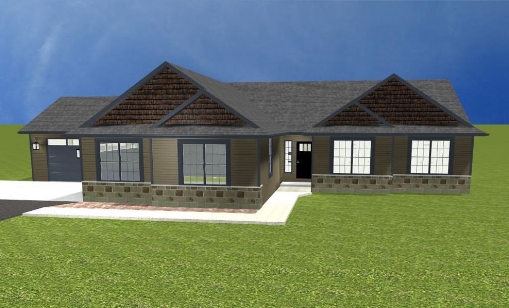 Spacious new construction in the Town of Harmony set on over an acre in a newly developed rural subdivision, located between Janesville and Milton. This 4 bedroom, 2.5 bathroom home offers space and a desirable layout. Step inside to a bright, open concept main living area featuring a stunning 10 foot coffered ceiling and cozy gas fireplace. The kitchen is designed for both everyday living and entertaining with a large island breakfast bar and a walk in pantry. The primary suite is a private retreat with a walk in closet, double sink vanity, and tile shower. Convenience is key with a first floor laundry room with a drop zone and half bath located right off the oversized 4 car garage. The lower level features tall ceilings and two egress windows, offering excellent potential for future finished space. Enjoy outdoor living with a patio overlooking your expansive lot. Estimated completion September or October.