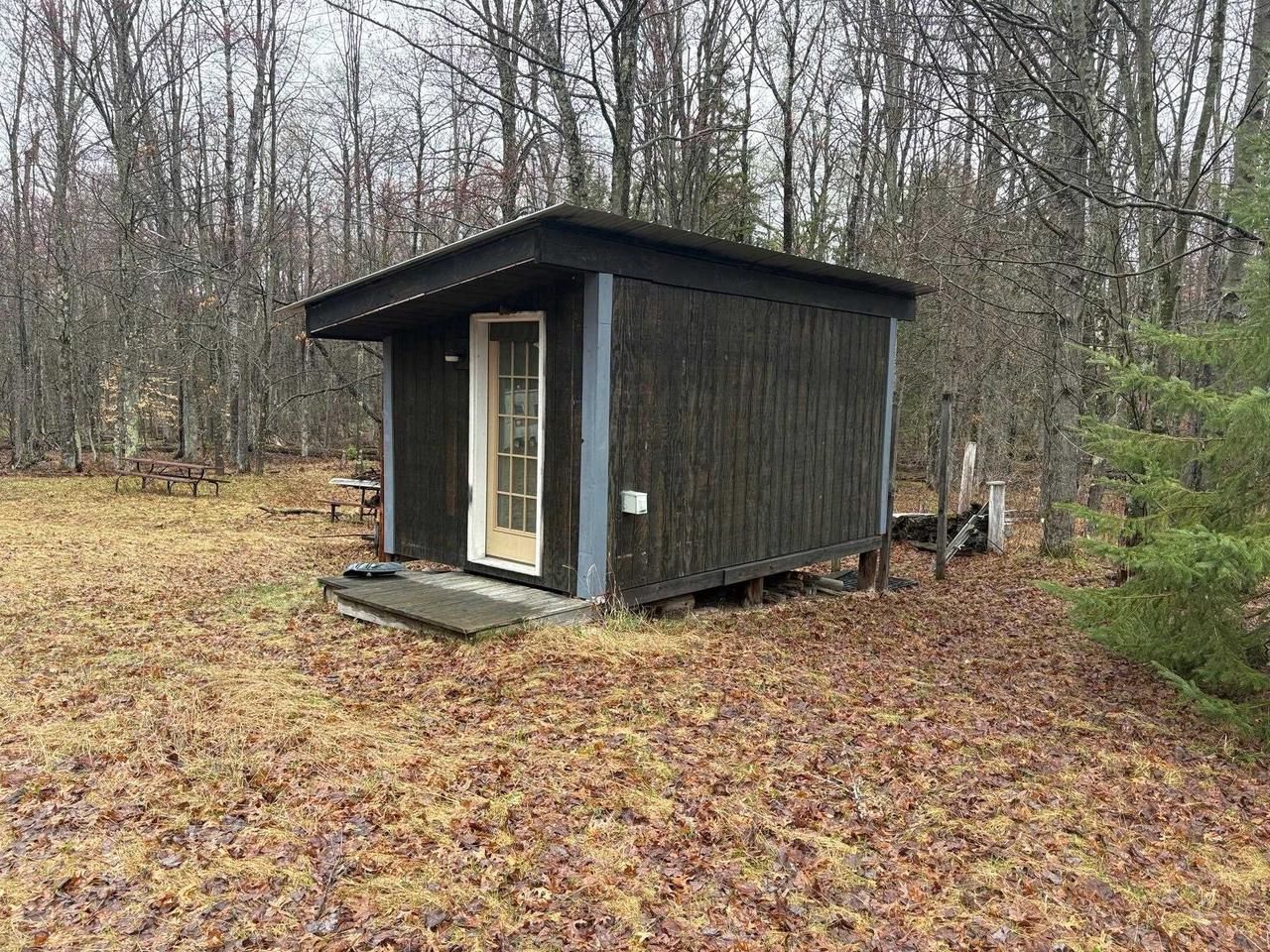 Here is your piece of the northwoods. Nearly five wooded acres with a dry shed to stay. Shed has electric to it and can easily be heated. Horseshoe driveway to get all the trucks and trailers in easily. ATV/UTV from the property.